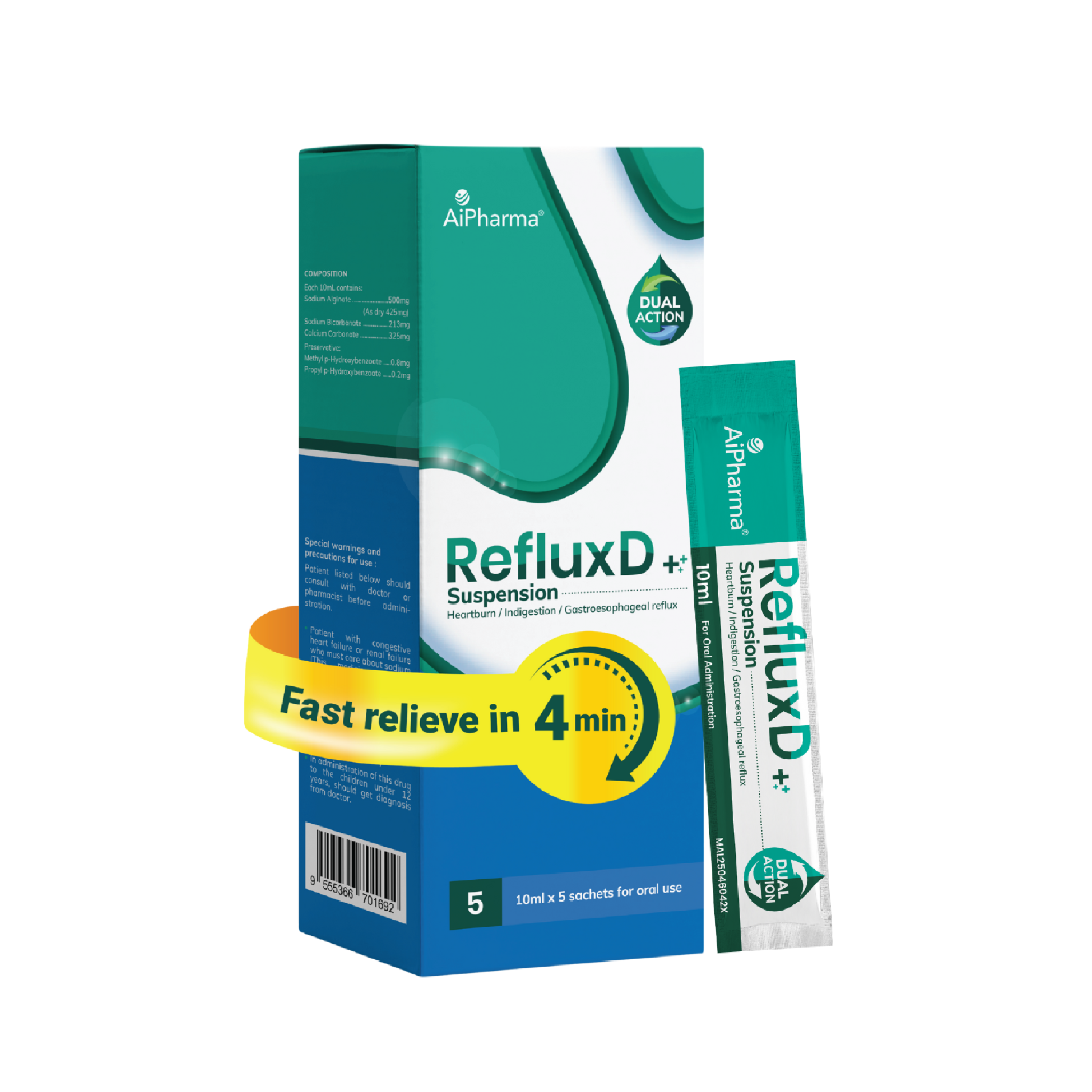 RefluxD provides fast relief in 4 minutes, with effects that can last up to 4 hours. It helps to relieve discomfort caused by acid reflux, heartburn, and indigestion. It is sugar-free, gluten-free, and suitable for pregnant and breastfeeding women.